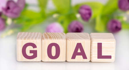 Block wood with GOAL on abstract blurred backgroune. Business goal concept.