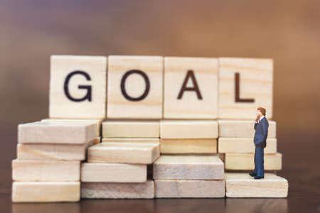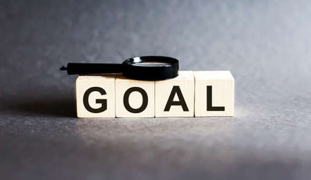Business spelling the word Goal on wood block cube , Conceptual image of business vision and ambition