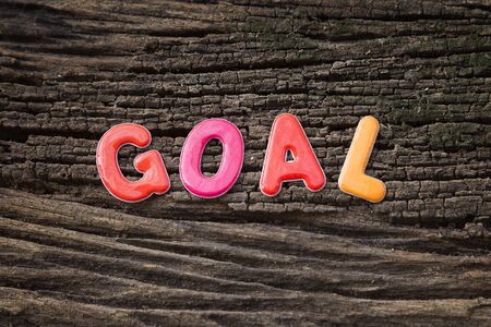 GOAL phrase is written on multi-colored stickers. Business concept, strategy, plan, planning, price