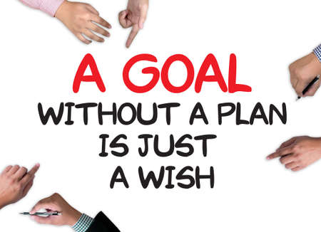 A Goal Without a Plan Is Just a Wish businessman work on white broad, top view