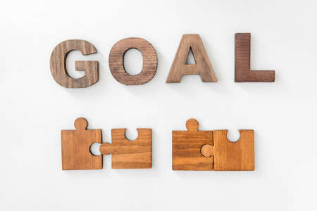 Business spelling the word Goal on wood block cube , Conceptual image of business vision and ambition