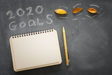 2020 new year goal written on notepad.