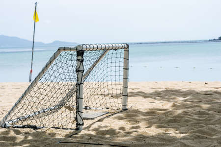 Goal soccer on the beach blue sky background