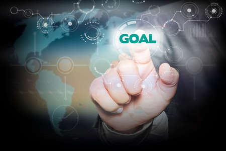 Businessman pressing button on touch screen interface and select GOAL. Business concept