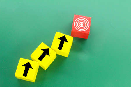 colored cubes with arrow icons pointing to the target or the concept of the path to success