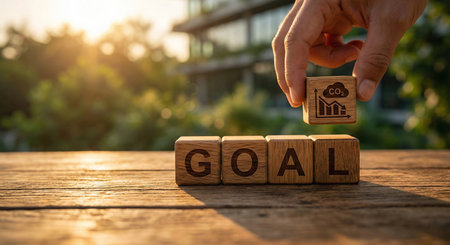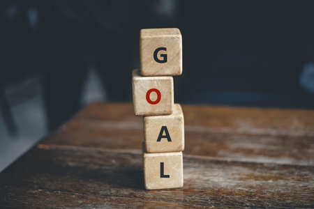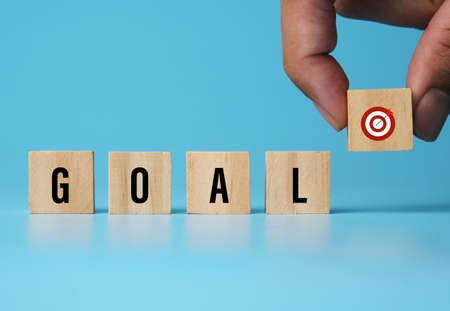 Business spelling the word Goal on wood block cube , Conceptual image of business vision and ambition