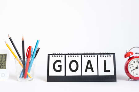 Goal or plan concepts with text on notepad and office accessories.Business management,Inspiration to success ideas