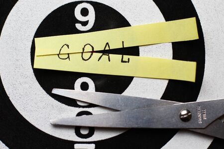 The inscription on the sticker: GOAL cut in half against the background of the target for shooting
