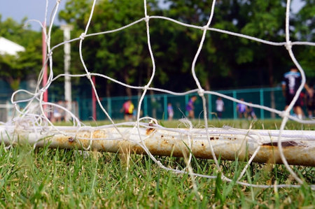 Net in the football goal penalty shootout in the background.