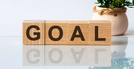 GOAL word written on wood block. goal text on table, concept.