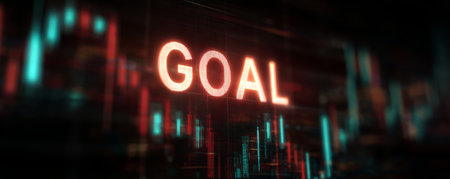 Goal word glowing on digital screen with financial chart and data in background showing success and achievement