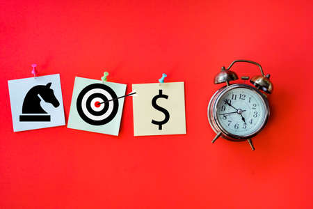 A red alarm clock with the word goals written below it. The clock is set to the time of 10:30