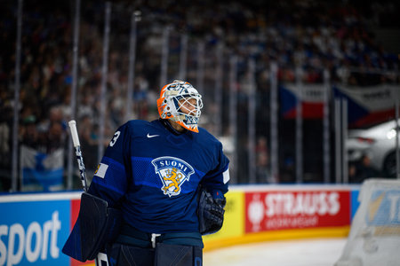 PRAGUE, CZECH REPUBLIC - MAY 20, 2024: The game of IIHF 2024 Ice Hockey World Championship Finland - Denmark at O2 Arena