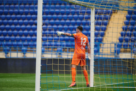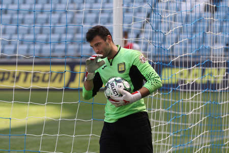 LEGNICA, POLAND - JUNE 20, 2020: Match Polish football Fortuna 1. League between Miedz Legnica vs PBruk-Bet Termalica Nieciecza 0:1. In action Lukasz Zaluska goalkeeper.