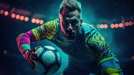 Generative AI : Goalkeeper catches the ball at the stadium lifestyle scene
