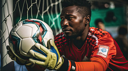 African-American goalkeeper is ready to catch the ball