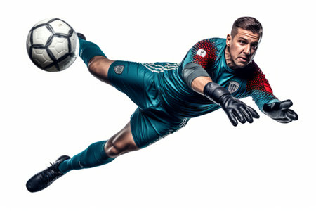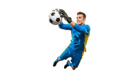 Goalkeeper in Action Leap Save Isolated on White background
