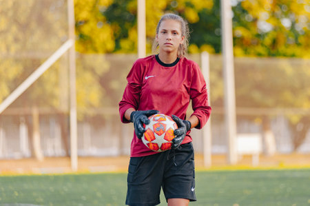 Kharkiv, Ukraine - September 6, 2019: Petrovec Vitktoria, goalkeeper of Rodina. Match of the Ukrainian Women Premier League Zhilstroy-1 - Rodina