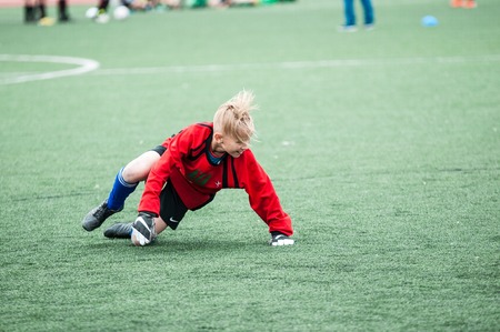 Orenburg, Russia - 1 June 2016: The boys play football in the preliminary games football festival Lokobol-2016
