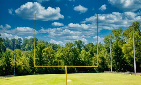Goal Posts On A Field In The Sun With Blue Sky And Clouds