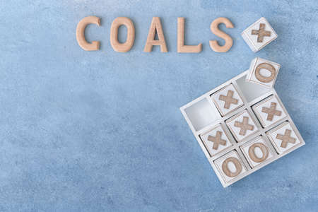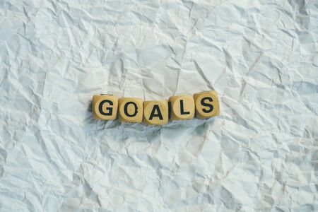 Top view of Goals word on wooden cube letter block on white background. Business concept
