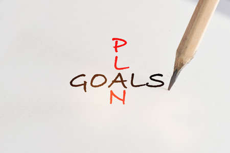 Goals and plan crossword written on white paper with pencil. Motivation concept and development idea