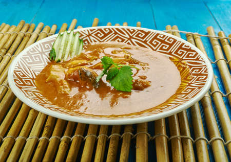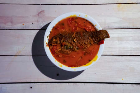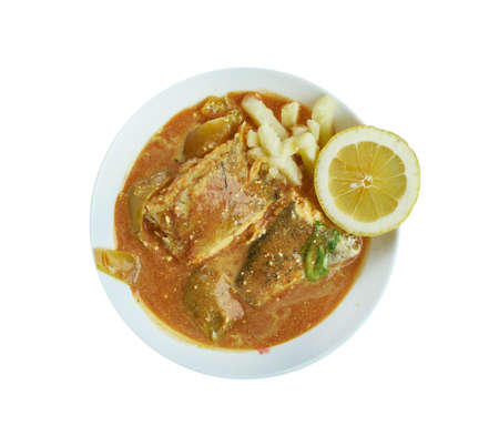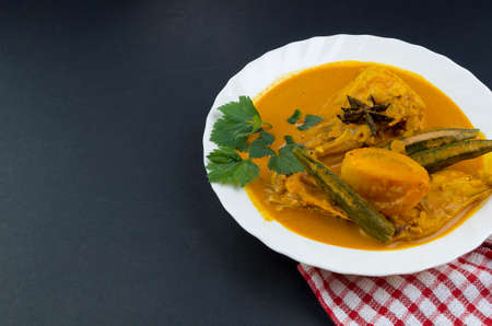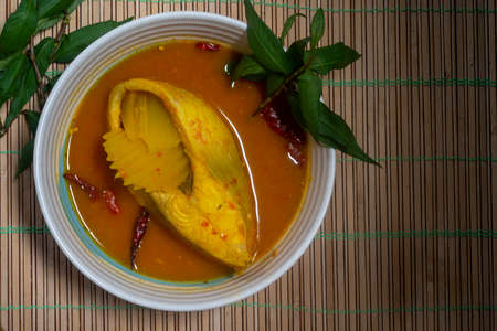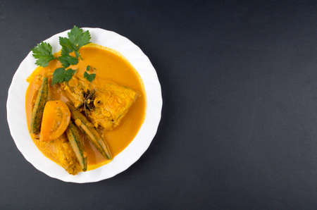 Spicy and tasty fish curry dish, Traditional Malaysian cuisine. Selective focus.