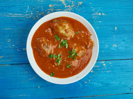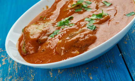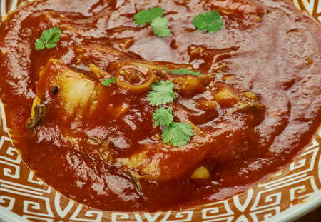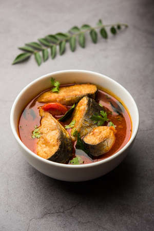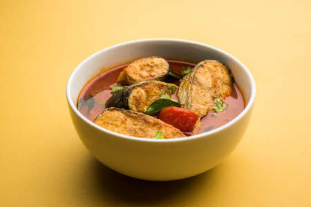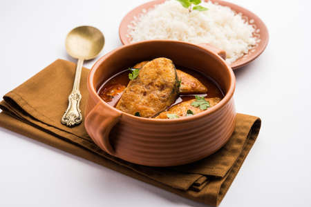 Spicy Fish Curry - kerala, konkan, bengal, goa style in Red and brown colour, served with rice