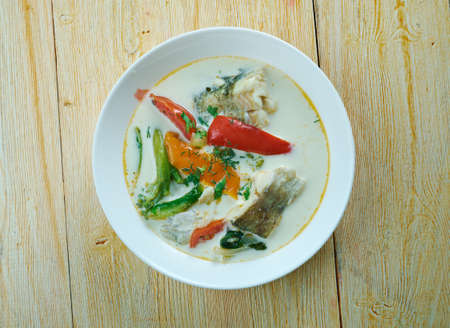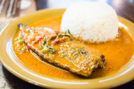 Tilapia curry with coconut milk and kaffir lime leaves, delicious taste
