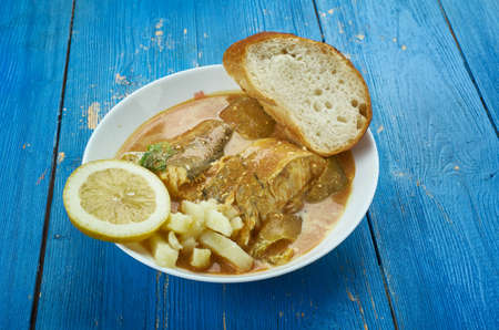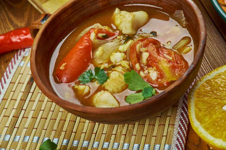 Arabian cuisine - Bapalo, Traditional Omani Fish Soup, Top view.