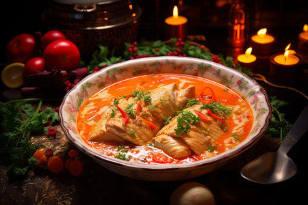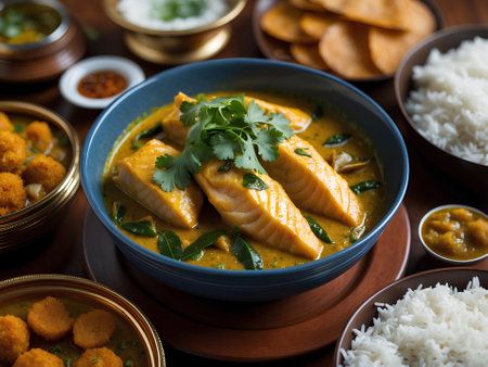 Delicious Indian Fish Curry: A Festive Feast Served in a Stunning Presentation