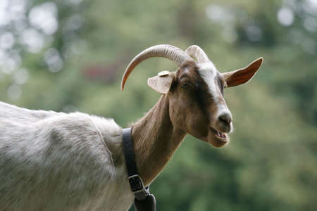 Portrait of a goat in the pasture. Animal