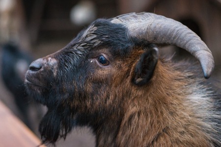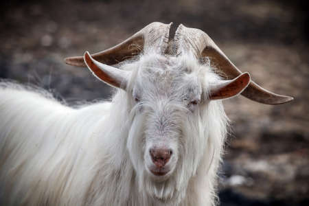 Portrait of a strong male goat with long hair