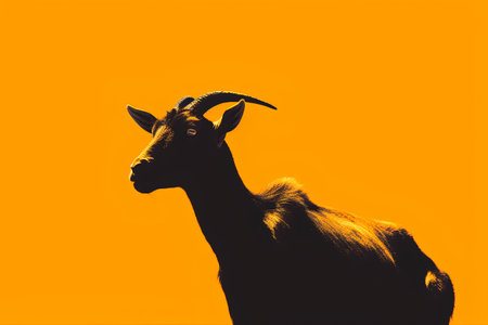 Silhouette of a goat with horns on an orange background.