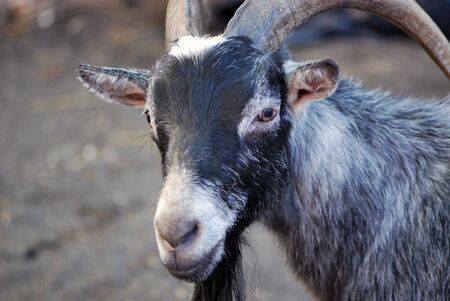Portrait of a goat on a farm in the village.