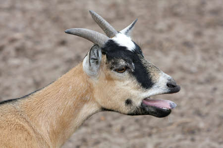 Gaot bleating with it's mouth open showing tongue and teeth