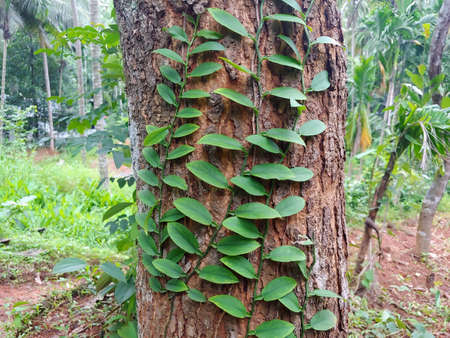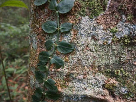 A climber plant on a tree trunk in the forest