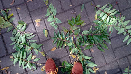 Closeup of leaves on the branch