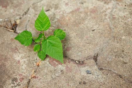 Ecology concept. Rising sprout on cement ground.
