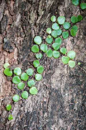 Ivy shaped like a heart climb on tree trunks.