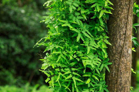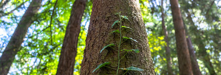 Vines crawling up a tree during summer in South Korean mountain.