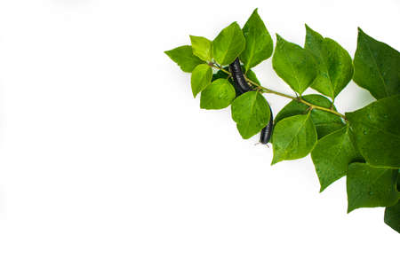 Julida is an order of millipedes on the leaf close up.