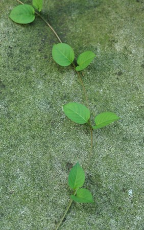 The plant sprouted in the stone on the wall