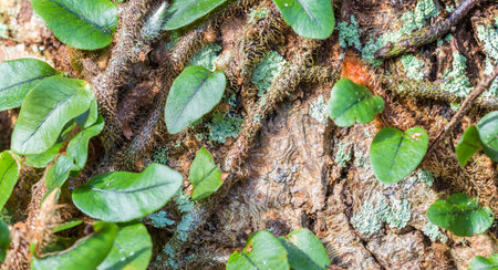 green natural leaves plant growing on tree trunk