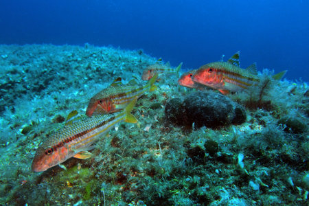 Striped Mullet, Mullus barbatus, Cabo Cope-Puntas del Calnegre Natural Park, Mediterranean Sea, Region de Murcia, Murcia, Spain, Europe