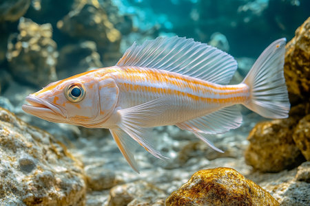 Explore the beauty of underwater life with this stunning image of a vibrant fish swimming gracefully in a coral reef habitat, showcasing the vivid colors of nature.