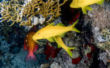 Red snapper on the bottom of a tropical coral reef in the Red Sea