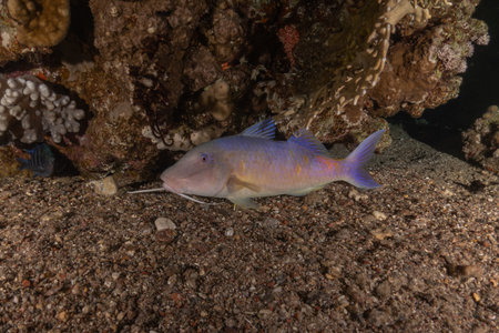 dash dot goatfish on sandy seabed in egypt while diving