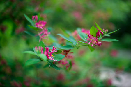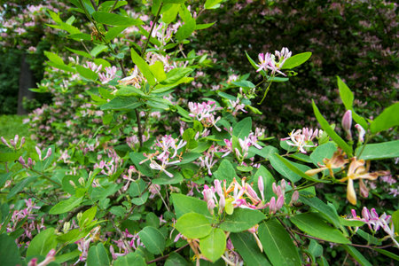 Tatarian Honeysuckle Lonicera tatarica in park High quality photo