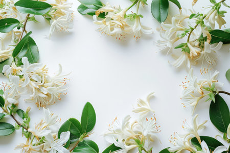 Blank Canvas: Honeysuckle Frame On White Background With Ample Space